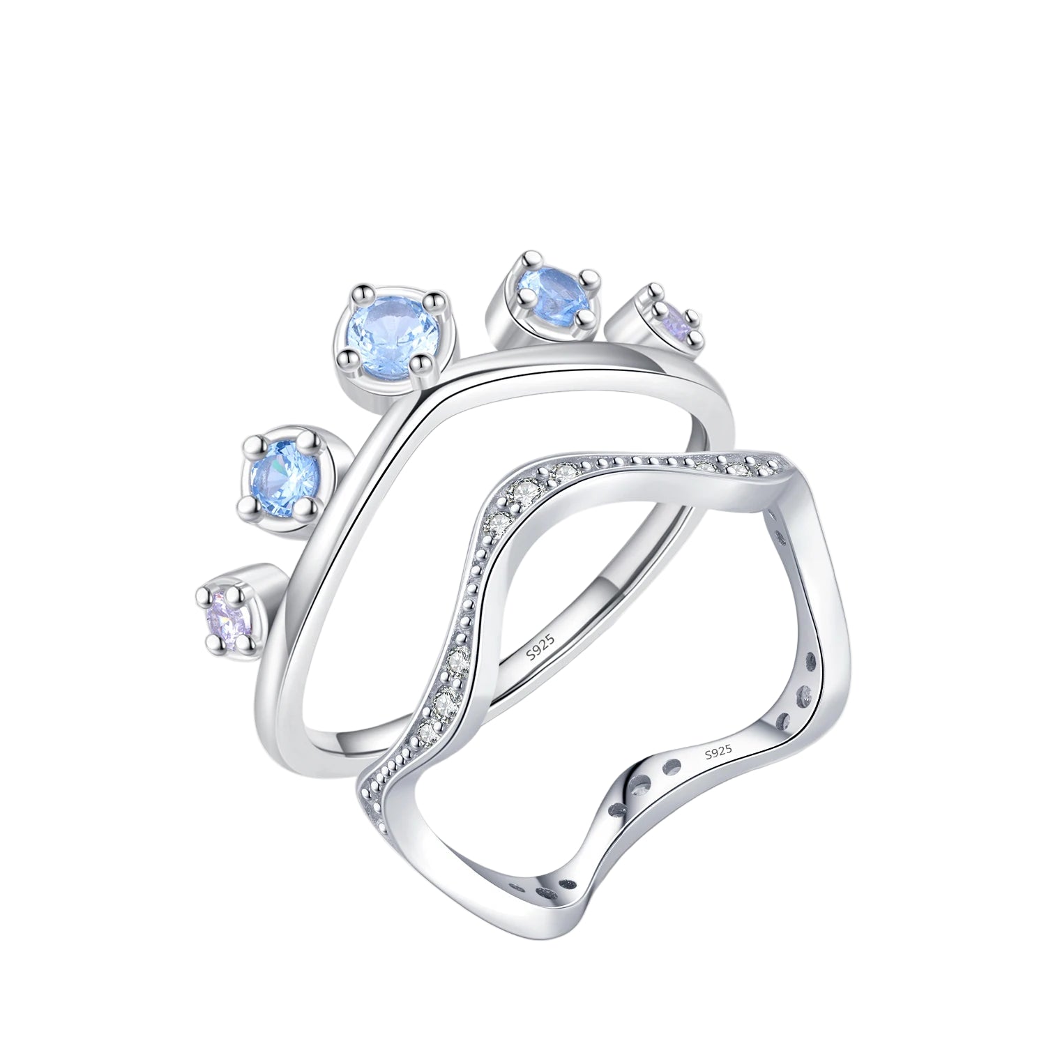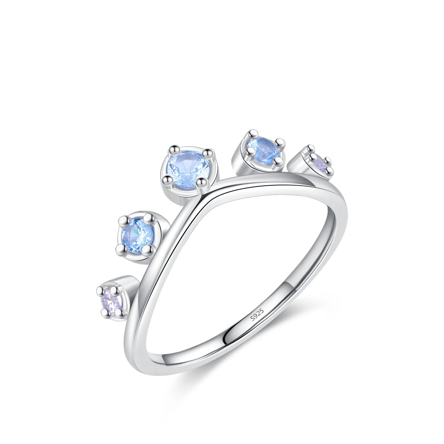 Trendy and elegant, this crown-style light blue finger ring features an irregular stackable design crafted from 925 sterling silver—perfect for cocktail parties and stylish occasions.