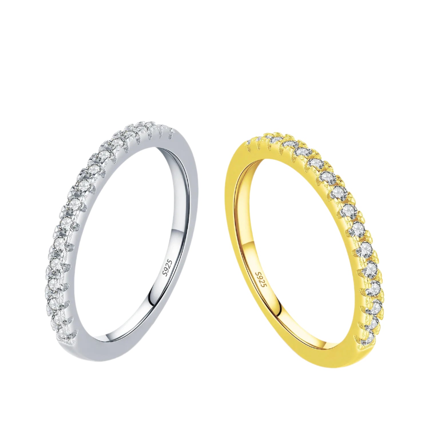 Elegantly crafted from 925 sterling silver, this eternity band ring features classic sparkling CZ stones and a gold-tone finish, making it a timeless choice for weddings, engagements, or special occasions.