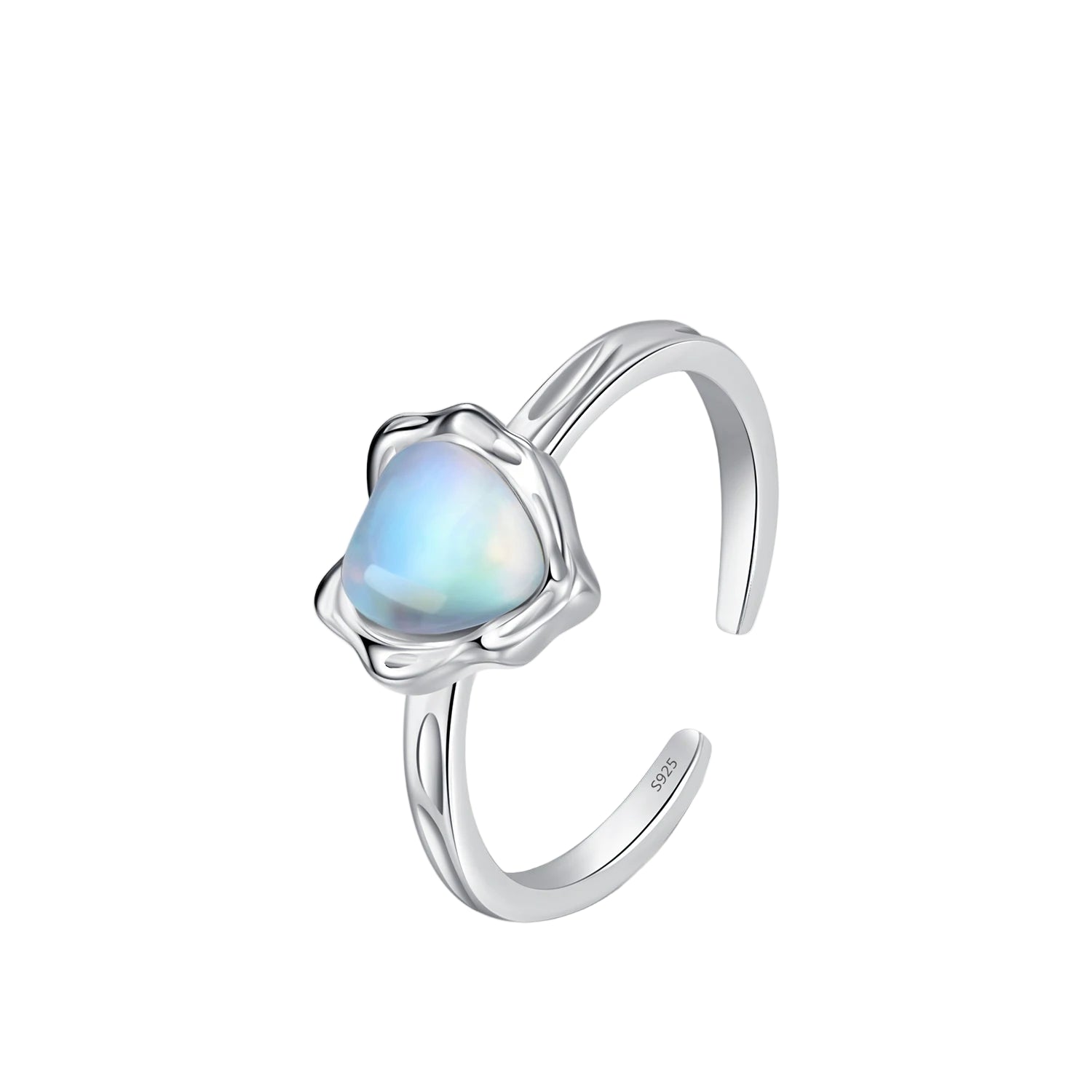 Exquisite and sparkling, this adjustable moonstone ring features a heart design crafted from 925 sterling silver—perfect for fashionable and free-size fine jewelry.