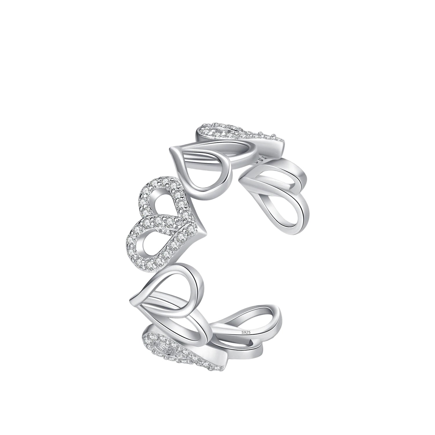 Classic and charming, this adjustable heart-shaped ring crafted from 925 sterling silver is a perfect fine jewelry gift for anniversaries and Valentine’s Day.