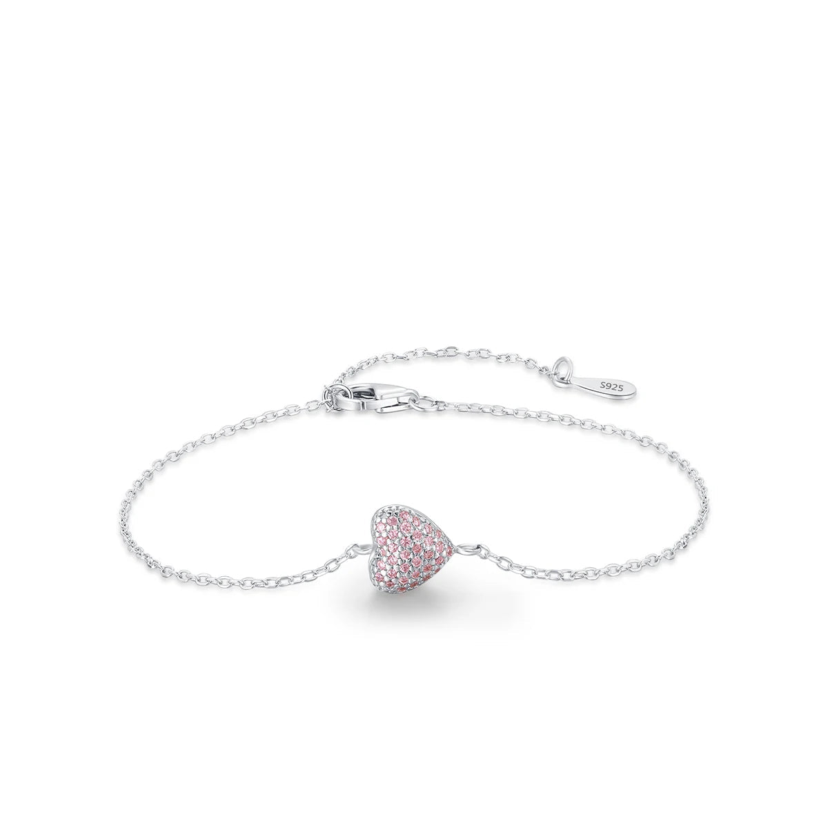 Romantic and delicate, this adjustable bracelet features a light pink zircon heart charm crafted from 925 sterling silver—perfect for anniversaries and meaningful gifts.