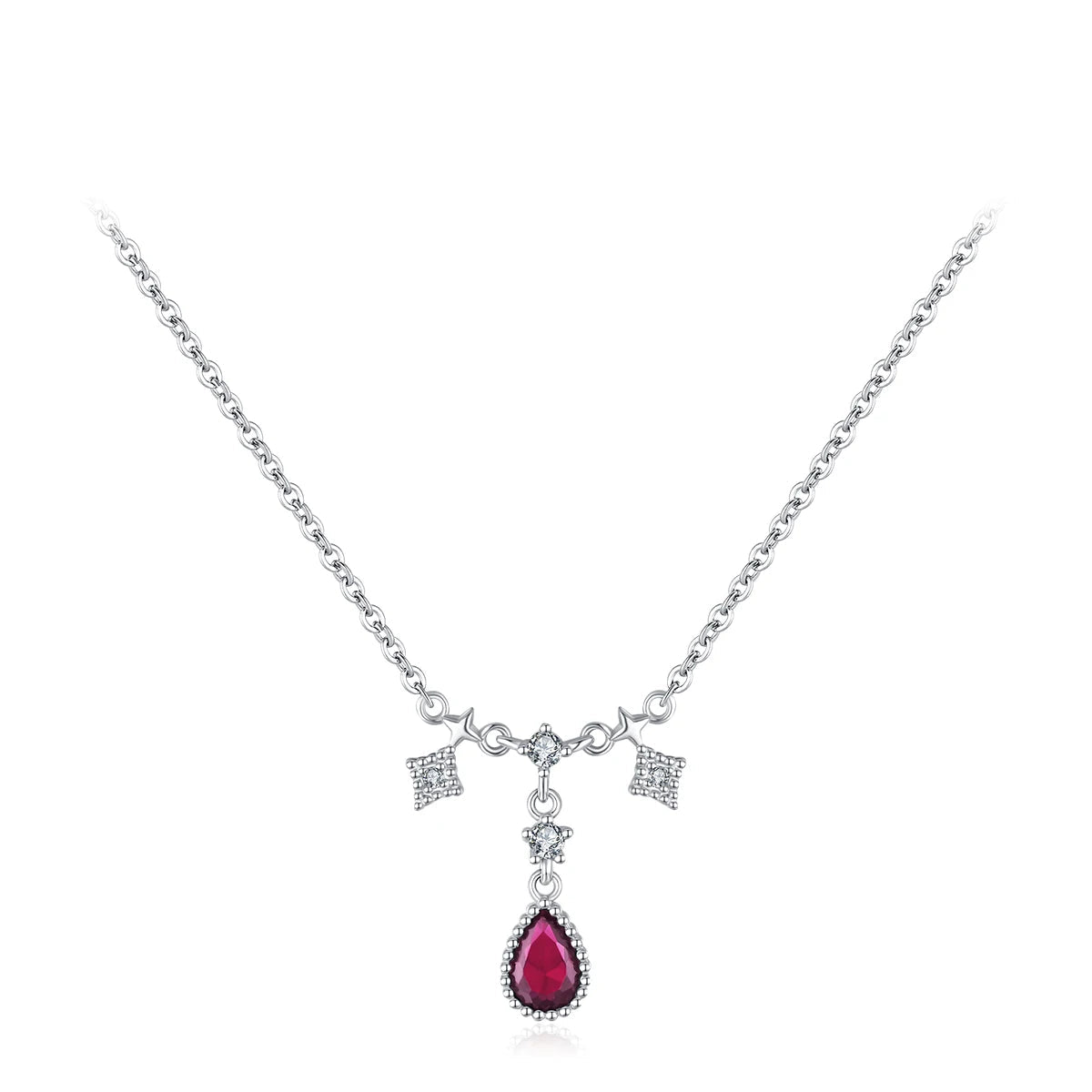 Luxurious and classic, this water drop pendant necklace features blue and red zirconia stones set in 925 sterling silver with a timeless link chain—perfect for weddings and special occasions.
