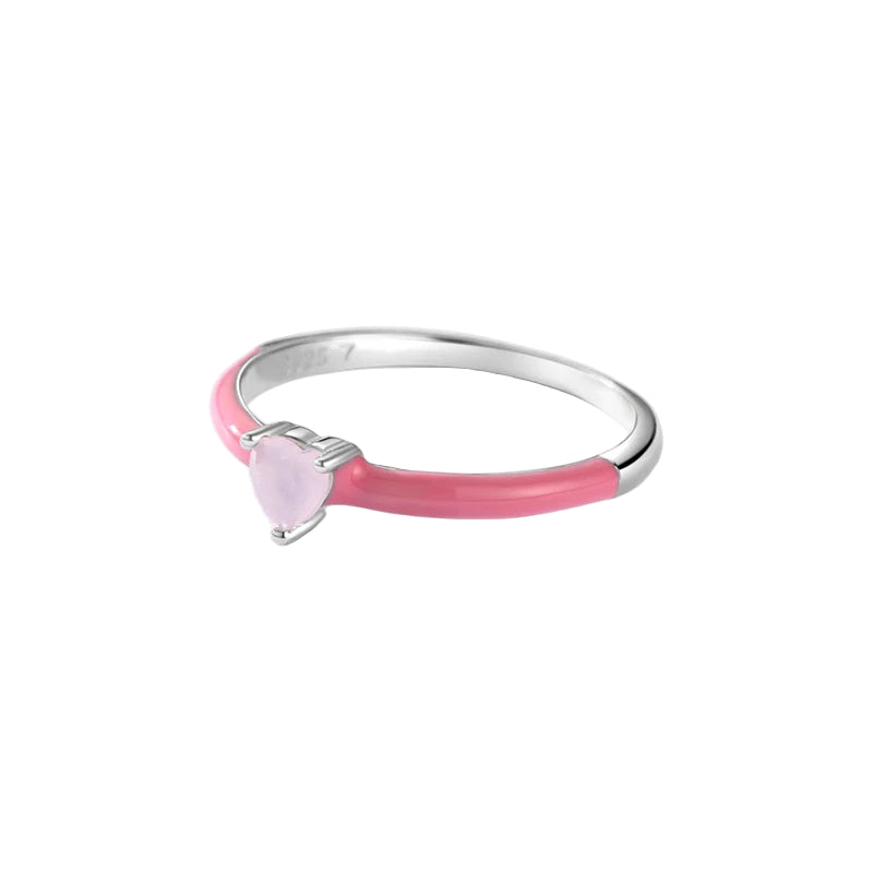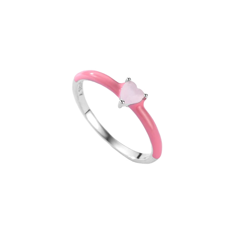 Trendy and charming, this new design ring features pink enamel hearts and opal details, crafted from 925 sterling silver. Perfect for stacking and adding a playful touch to party looks or gifting.