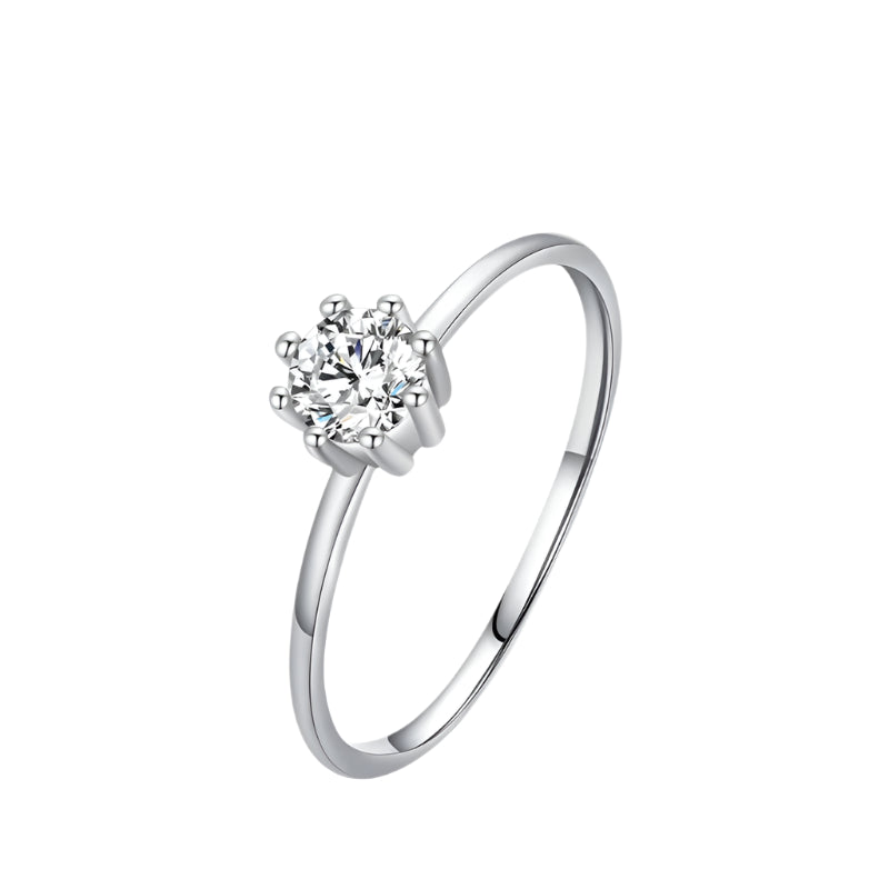 Shining and classic, this 4mm clear CZ finger ring crafted from 925 sterling silver is a perfect promise ring and elegant wedding gift for women.