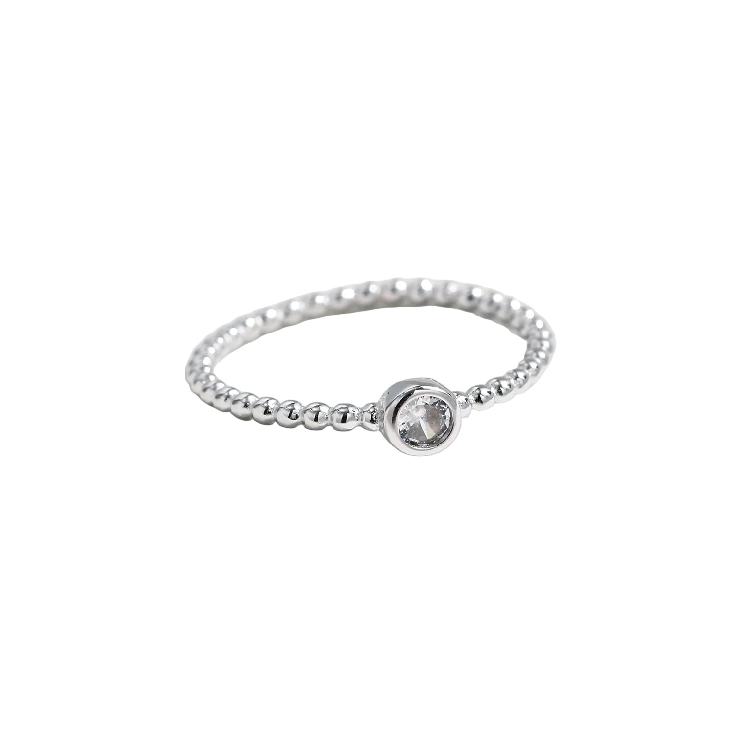 Trendy and refined, this bezel-set Moissanite ring features delicate bead detailing on 925 sterling silver—perfect for stacking and elevating any jewelry collection.