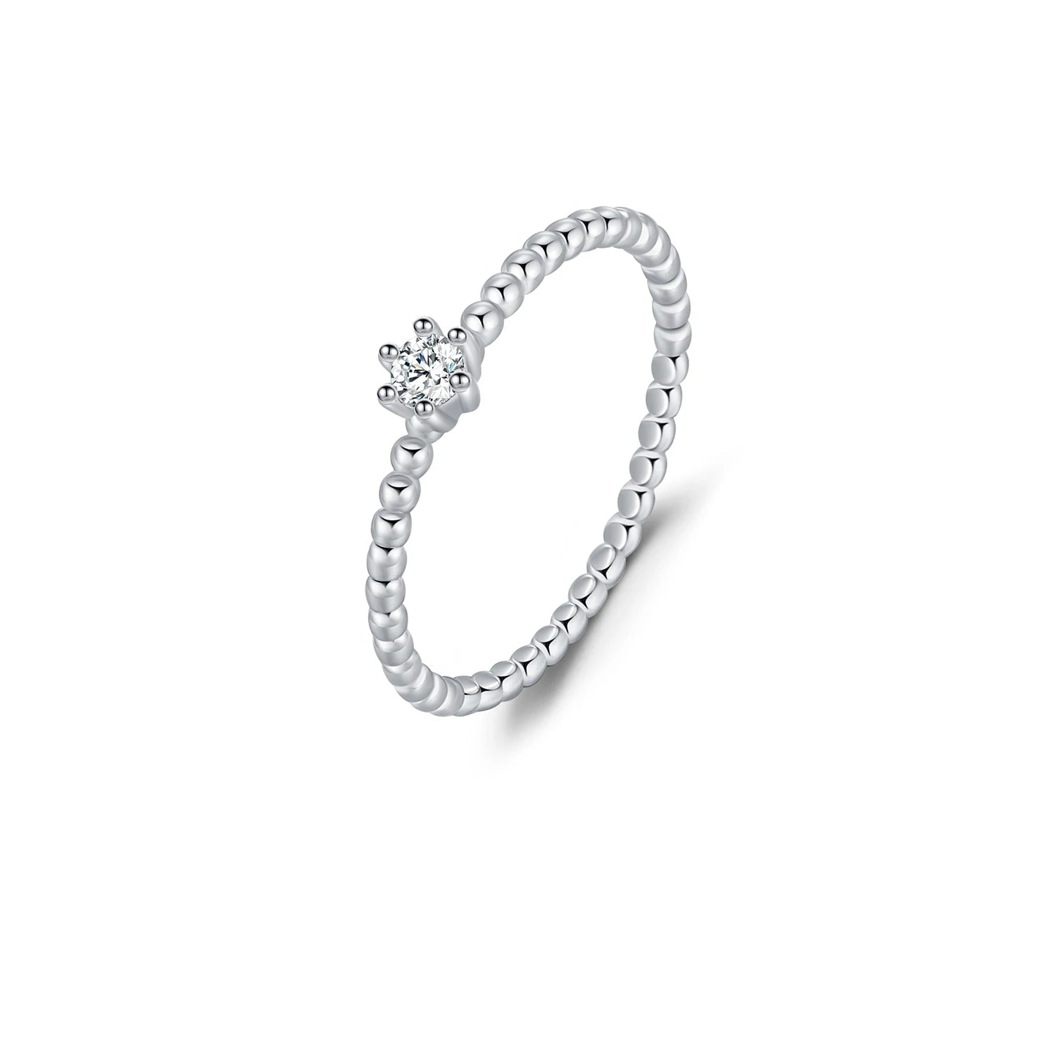 Simple and classic, this D color round Moissanite lab diamond ring features delicate bead accents on 925 sterling silver—perfect for stacking or wearing alone with elegance.