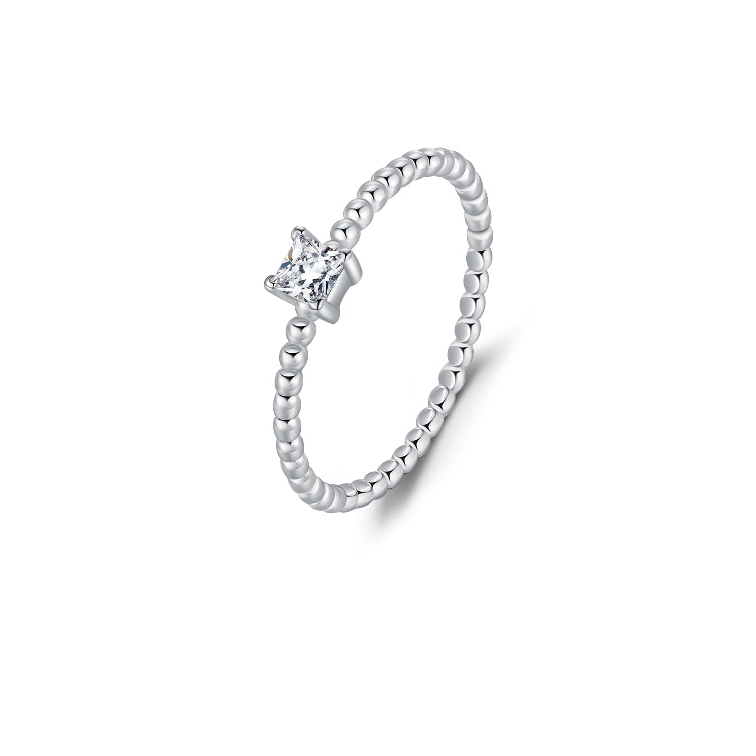 Elegant and timeless, this D color square princess cut Moissanite engagement ring features simple bead detailing on 925 sterling silver—perfect for a classic statement.
