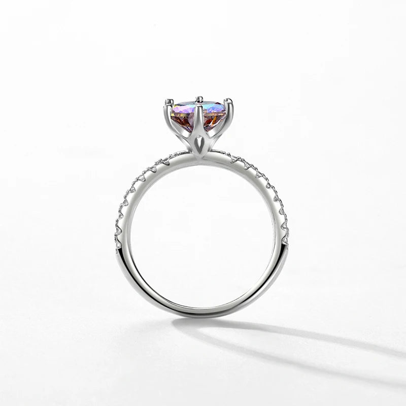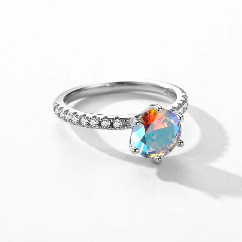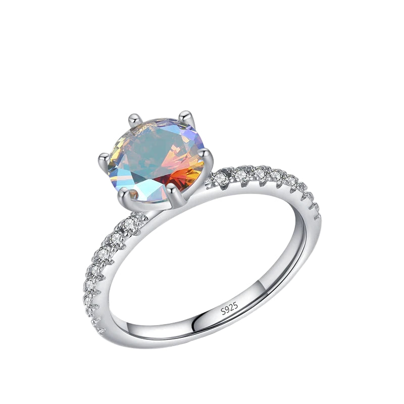 Sparkling and colorful, this genuine 925 sterling silver round zircon ring features a simple band design—perfect as fine jewelry and a thoughtful wedding gift.