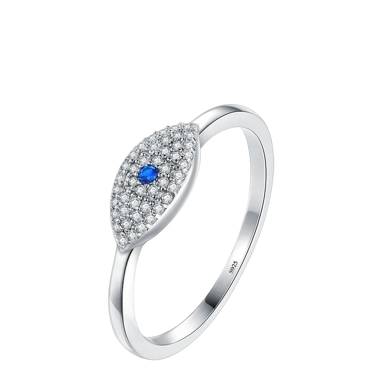 Luxurious and charming, this 100% 925 sterling silver finger ring features a cubic zirconia blue eye design—perfect for adding a lucky touch to your fashion and fine jewelry collection.