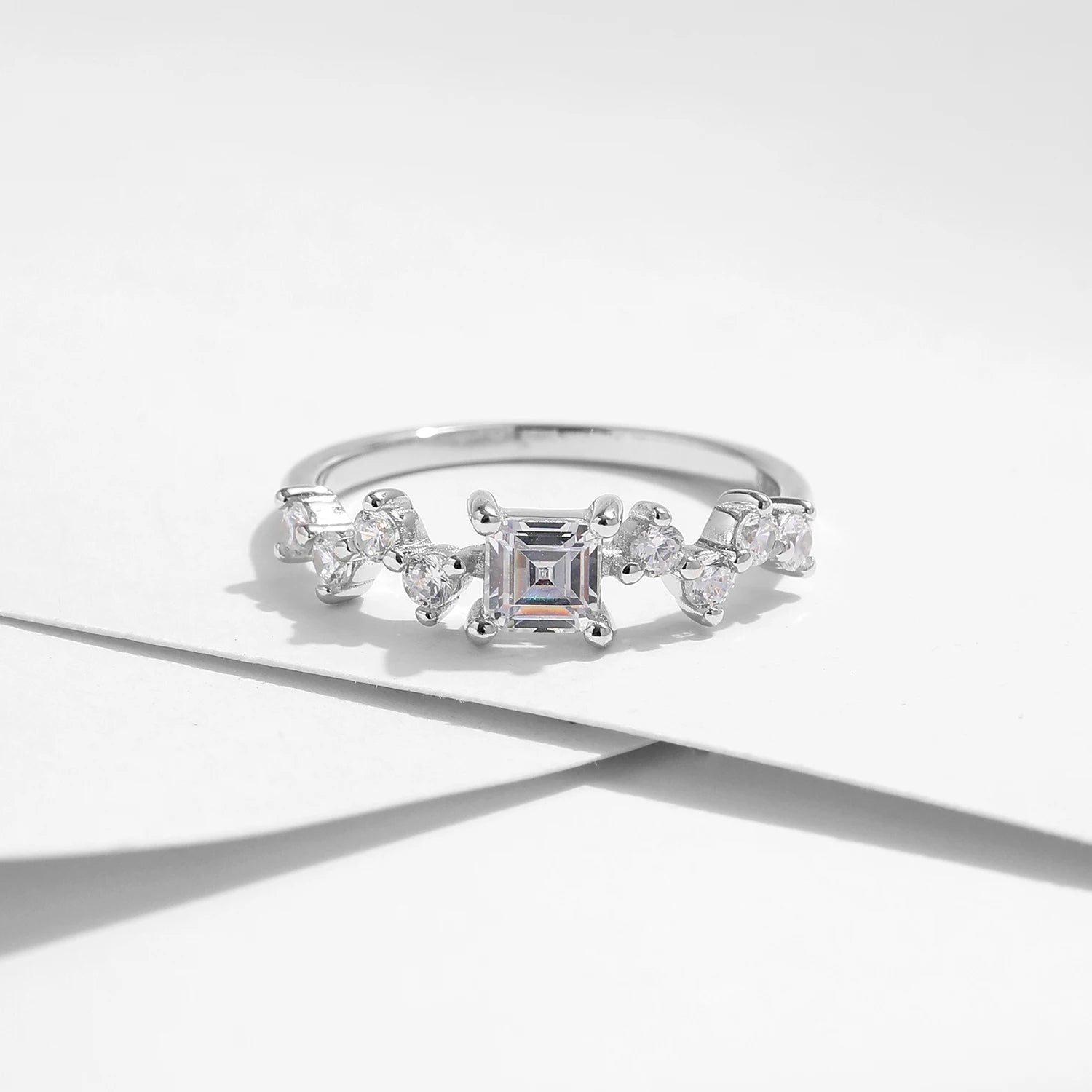 Elegant MODIAN 925 sterling silver band with a sparkling square CZ, perfect for women’s wedding or engagement fine jewelry.