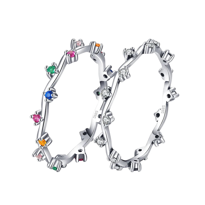 Vibrant MODIAN real 925 sterling silver ring adorned with rainbow-colored zircon in an irregular crystal design, offering a unique and fashionable statement for women’s fine jewelry collections.