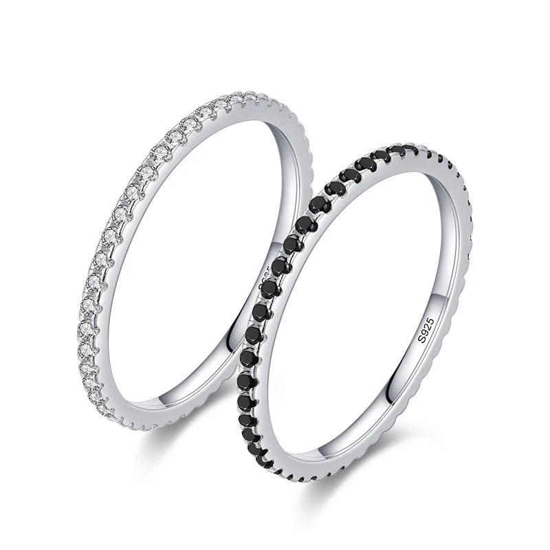 Fashion-forward and elegant, these stackable rings crafted from 925 sterling silver feature black zirconia crystals, perfect for adding a chic touch to any party or special occasion look.