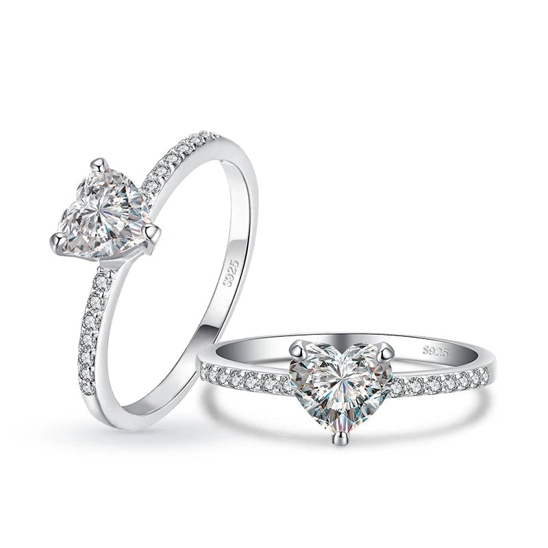 Sparkling and luxurious, this 1CT clear CZ heart-shaped finger ring crafted from 925 sterling silver is a classic wedding accessory and perfect gift for women.